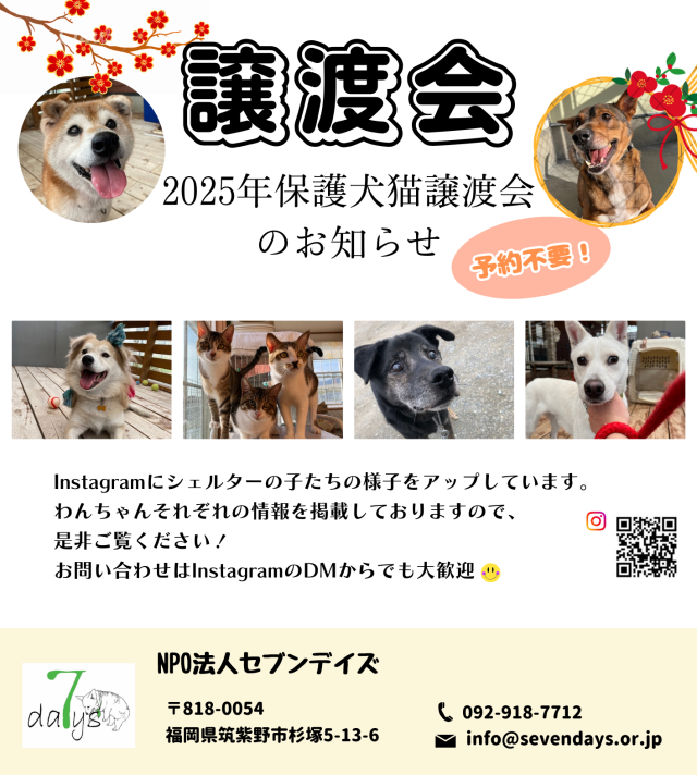 12月20日開催「セブンデイズ 保護犬・保護猫 譲渡会」のご案内